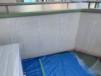 台風前に足場設置も終わり今日から養生作業、クラック処理をしました!