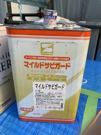 ですからサンドペーパーで良く研磨した後、通常鉄部の下塗りに使用する密着力の優れた錆止め材を使用します。