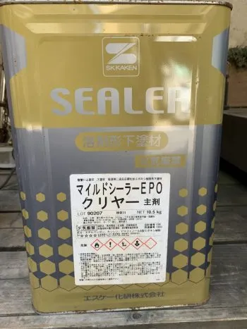 マイルドシーラーEPO クリヤー! ちょっと見た目は濡れただけの感じですが2液性の強力な下塗り材です。