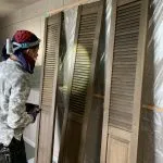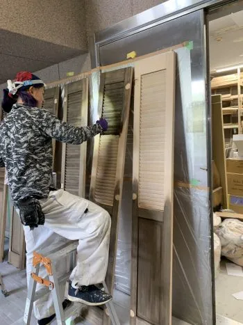 新規クローゼットの枠、ルーバー建具塗装です!